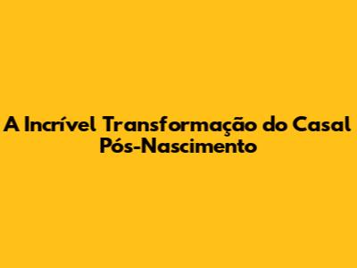 A Incrível Transformação Do Casal Pós-Nascimento