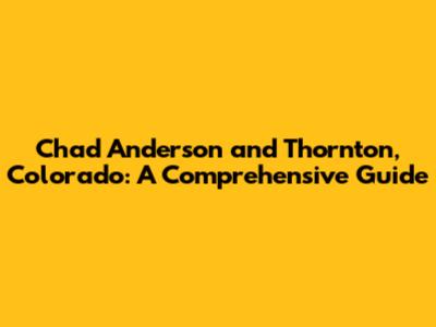 Hey everyone! Let's dive into the world of Chad Anderson and his connection to the awesome city of Thornton, Colorado. This guide is your go-to resource for everything you need to know about Chad and how he's involved in the local scene. We'll explore his background, what makes Thornton special, and how he contributes to the community. Get ready to learn some cool stuff, guys!
