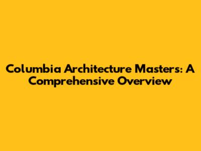 Columbia Architecture Masters: A Comprehensive Overview