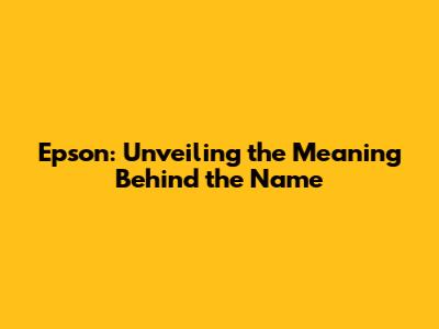 Epson: Unveiling The Meaning Behind The Name