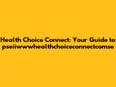 Health Choice Connect: Your Guide To Pseiiwwwhealthchoiceconnectcomse