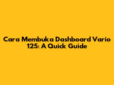How To Open Vario 125 Dashboard: A Quick Guide