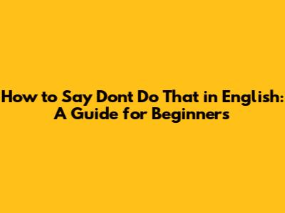 How To Say Don't Do That In English