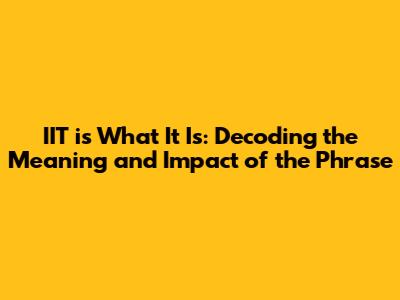 IIT Is What It Is: Exploring The Meaning And Impact