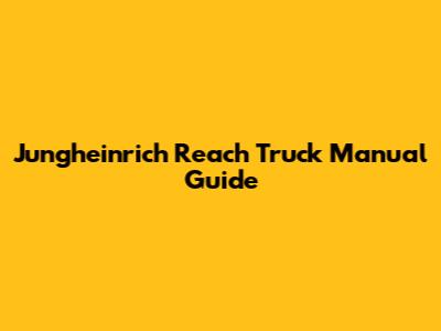 Jungheinrich Reach Truck Manual Guide