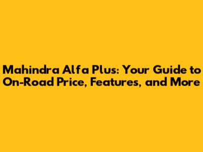 Mahindra Alfa Plus: On-Road Price, Features & More