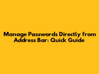 Manage Passwords Directly From Address Bar: Quick Guide