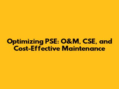 Optimizing PSE: O&M, CSE, And Cost-Effective Maintenance