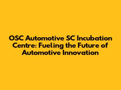 Key Features of the OSC Automotive SC Incubation Centre