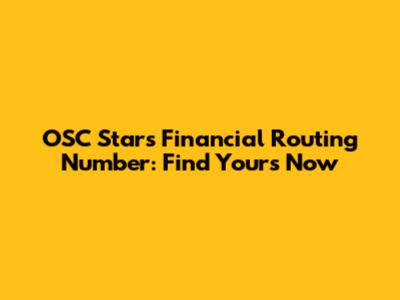 OSC Stars Financial Routing Number: Find Yours Now