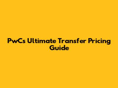 PwC's Ultimate Transfer Pricing Guide
