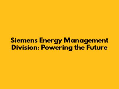 Siemens Energy Management: Solutions & Innovations