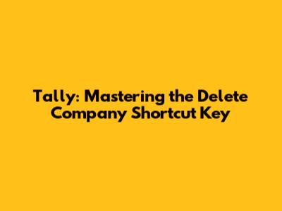 Hey guys! Ever found yourself needing to quickly delete a company in Tally and wished there was a faster way than navigating through all those menus? Well, you're in luck! Understanding and using the Tally company delete shortcut key can save you a ton of time and hassle. In this article, we're diving deep into everything you need to know about deleting companies in Tally using shortcuts, making your accounting tasks smoother and more efficient. So, let’s get started and unlock the secrets to becoming a Tally pro!