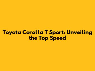 Toyota Corolla T Sport: Unveiling The Top Speed